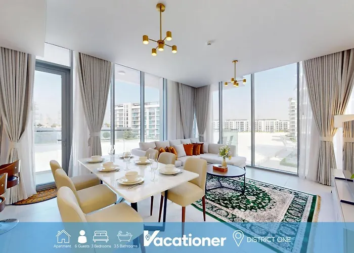 Vacationer L Serene 3 Bed Haven L Private Beach L District One Dubai